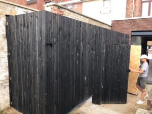 terrasse couverte terminée terrasse en bois et arbre en acier terrasse couverte et un arbre en acier Plafond de terrasse en chene massif Pergola au fond du jardin structure en douglas et bardage en Pin autoclavé noir Pergola Assemblage de la pergola Terrasse moderne avec fleurs blanches. Aire de jeux en bois pour enfants Cabane en bois avec clôture Mur en bois moderne, jardin verdoyant. Espace extérieur en boisarrière de la pool house Bardage ayous bardage pool house en ayous alignement parfait du bardage et intégration de la porte hamac coffre BBQ Plancha coffre auvent pour bbq placard de terrasse Placard de jardin perspective vers le jardin